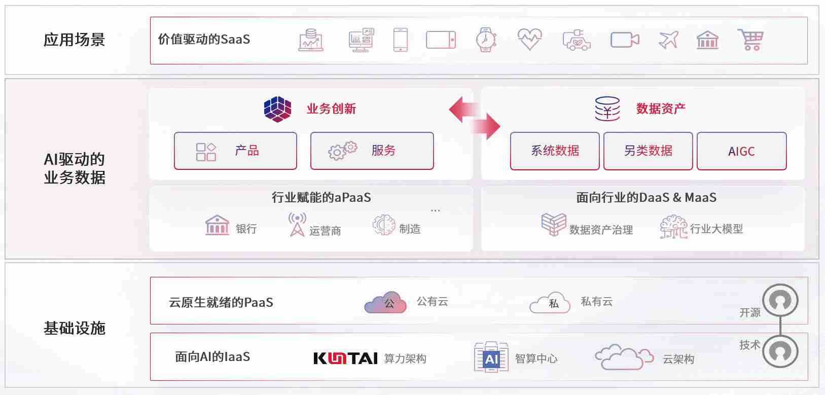 数字时代,,围绕企业数字化转型的关键要素,,z6com尊龙数码开创性的提出数云融合战略和技术体系框架,,,,着力在云原生、、、数字原生、、、AI原生和信创产业上架构产品和服务能力,,,为处在不同数字化转型阶段的快消零售、、、、汽车、、、、金融、、医疗、、政企、、、、教育、、、、运营商等行业客户提供泛在的敏捷IT能力和融合的数据驱动能力,,,,构建跨界融合创新的数字业务场景和新业务模式,,助力企业级客户建立面向未来的核心能力和竞争优势,,全面推动社会的数字化、、、、智能化转型升级。。。